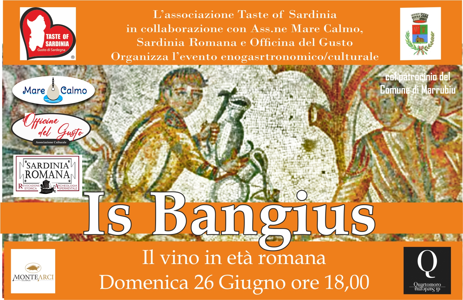 Muru Is Bangius, Marrubiu (Or) Si svolgerà Domenica 26 Giugno presso il sito archeologico di Is Bangius nel territorio di Marrubiu, a sud del Monte Arci, l’evento, che vuole essere il primo passo di un percorso dal titolo “Gustiamoci la storia” che unirà le Associazioni enogastronomiche e culturali, le aziende del wine&food e le Istituzioni …