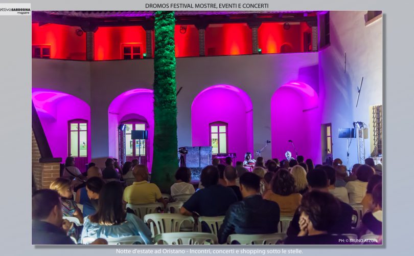 Una notte d’estate nel centro storico di Oristano per lo shopping sotto le stelle, fra negozi, bar e ristoranti, concerti, mostre d’arte, e incontri letterali.